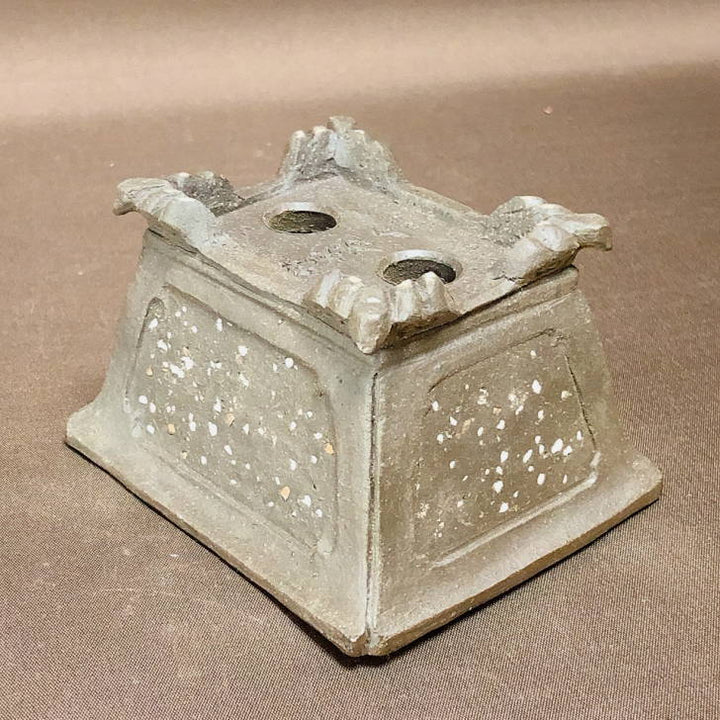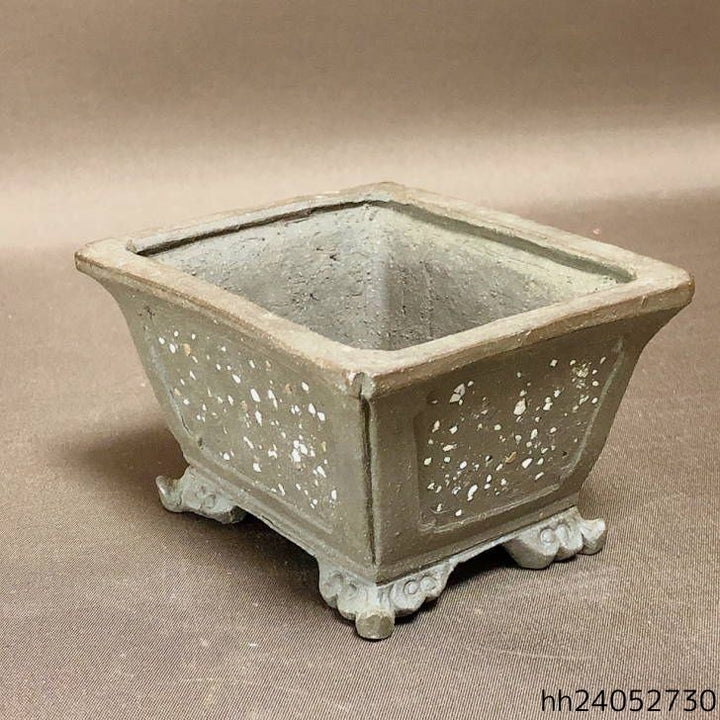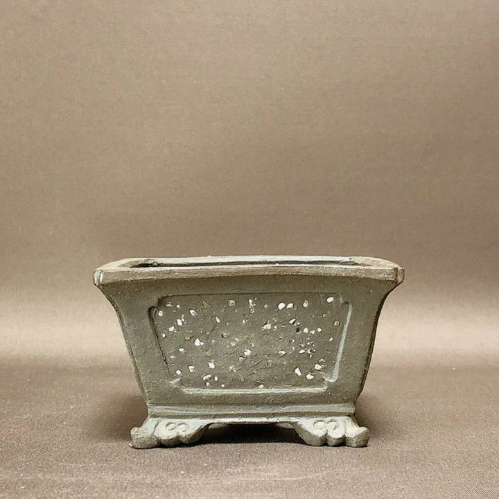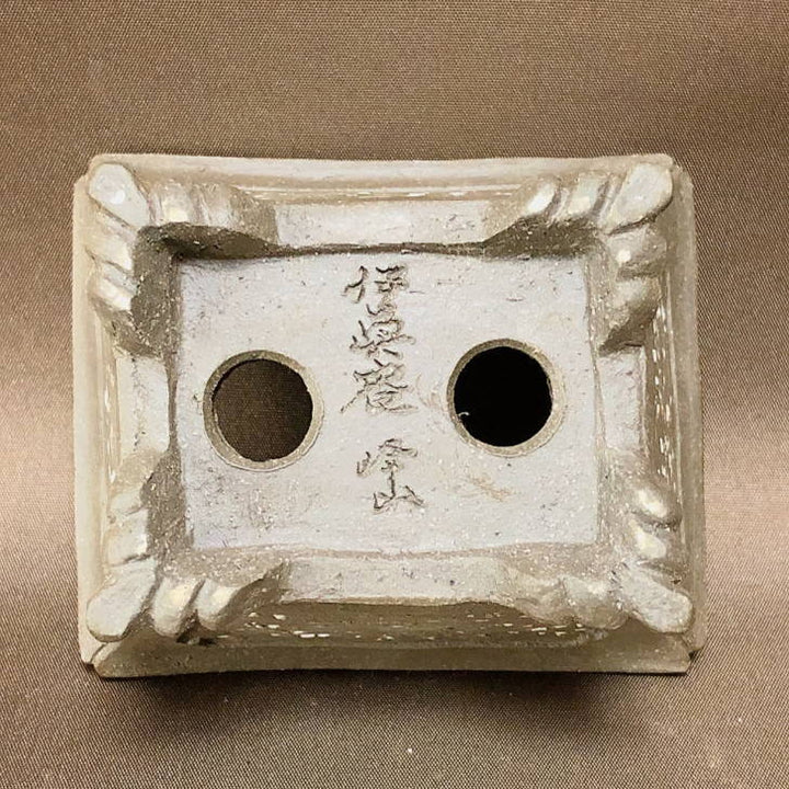 中古 盆栽鉢 伊真庵 峰山 小型 長辺 約10.2cm 長方鉢 隅入 雲足 額入 泥物 中古鉢 x1198417552