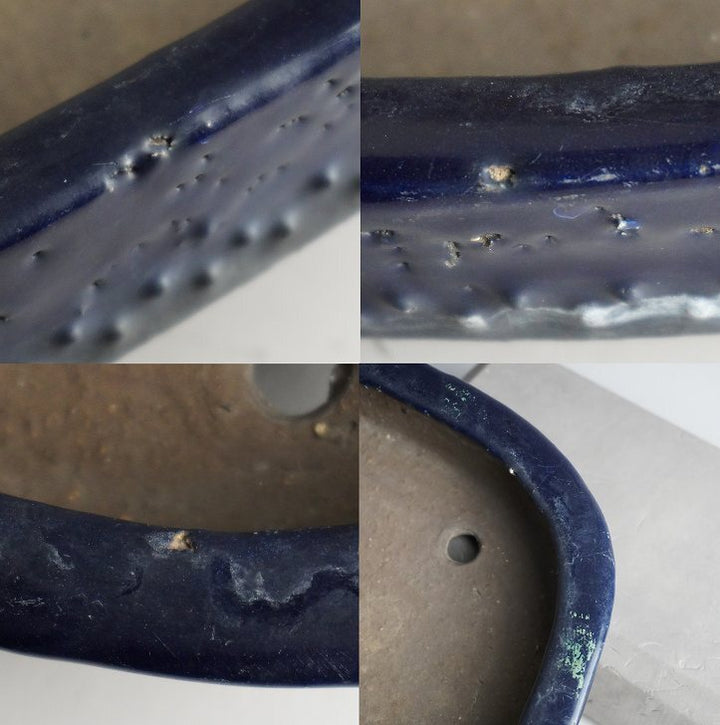 盆栽鉢 常滑 秀峰 中型 長辺 約32.5cm 長方鉢 撫角 鋲打 釉薬 現品 中古鉢 秀峰 大正12年創業の片岡陶園四代目、片岡晋が昭和48年義村陶園と改名する。翌49年に秀峰号を継承される。 陶法は、紐づくり、押型と多彩で、すっきりとした器型にどこか味わいのある形の特徴がある。釉色物も専門でこなれた釉の使い方には独自の工夫がうかがわれる。...