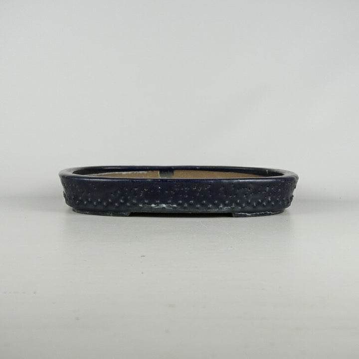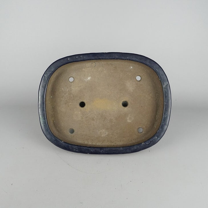 中古 盆栽鉢 常滑 秀峰造 義村陶園 中型 長辺 約32.5cm 長方鉢 撫角 鋲打 釉薬 中古鉢 r1198405087
