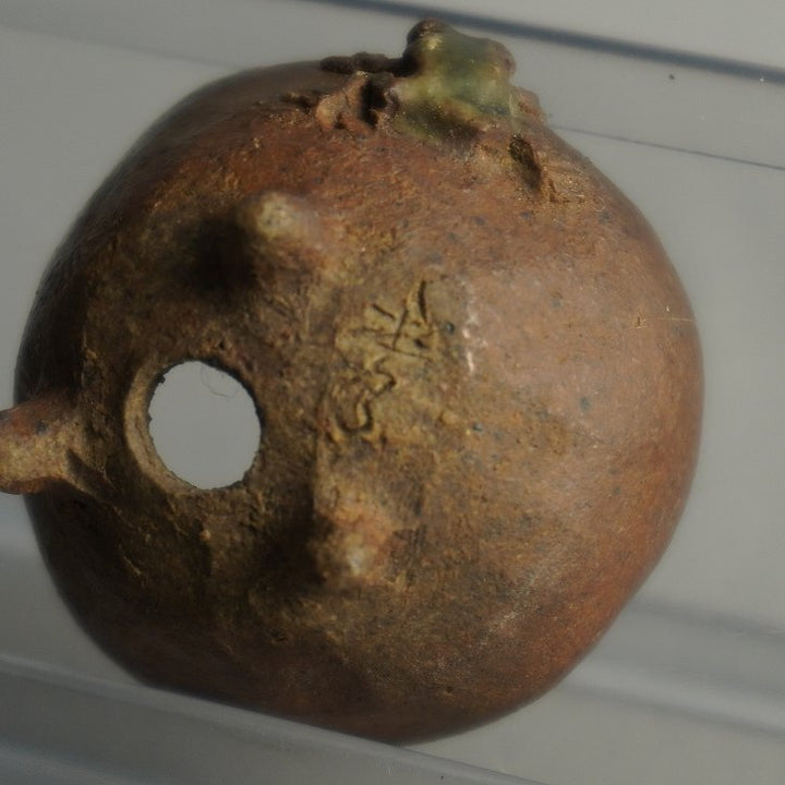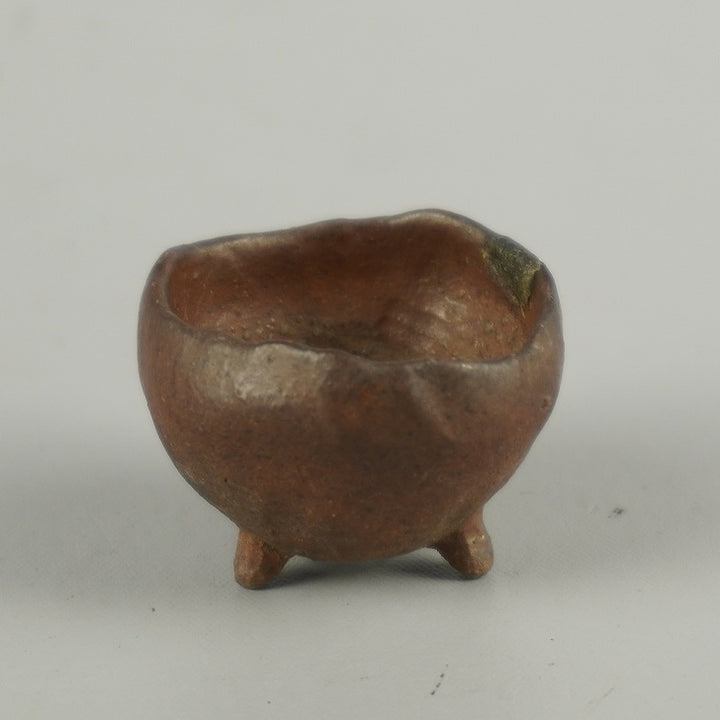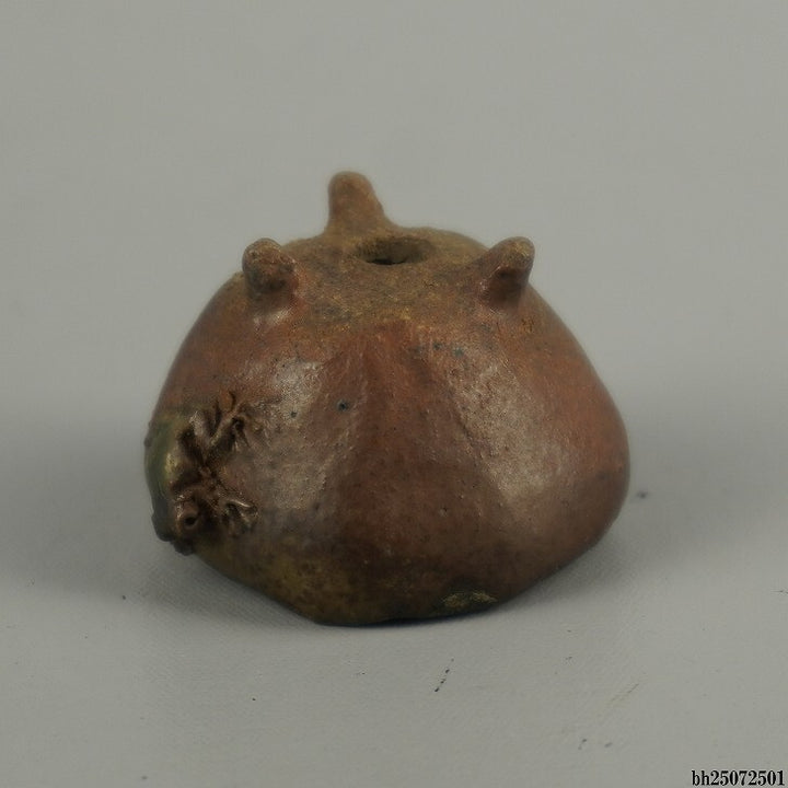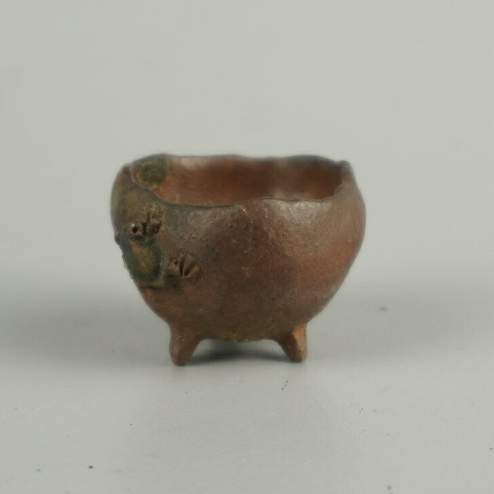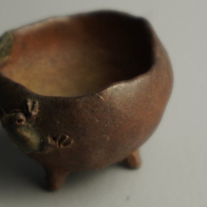 盆栽鉢 秀 秀峰 豆鉢 長辺 約 3cm 丸鉢 蛙付 かえる カエル 釉薬 ミニ鉢 鑑賞 観賞用 現品 中古鉢 品名秀...