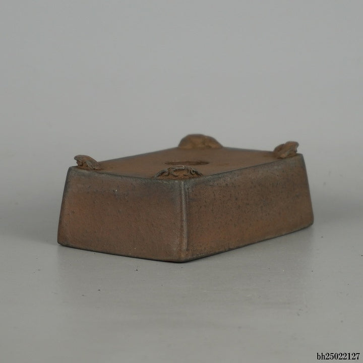 盆栽鉢 舟山 小型 長辺 約 12cm 長方鉢 雲足 泥物 現品 中古鉢 品名舟山...