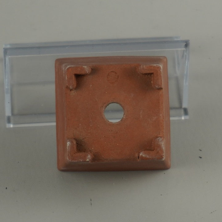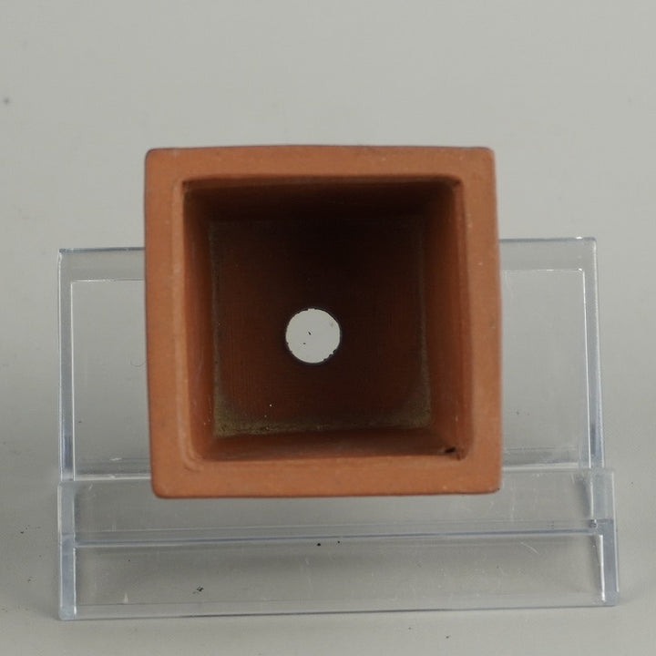 盆栽鉢 落款あり 豆鉢 長辺 約 4.3cm 正方鉢 泥物 ミニ鉢 鑑賞 観賞用 現品 中古鉢 品名落款あり...