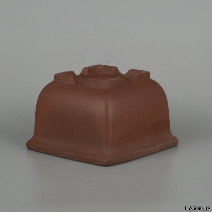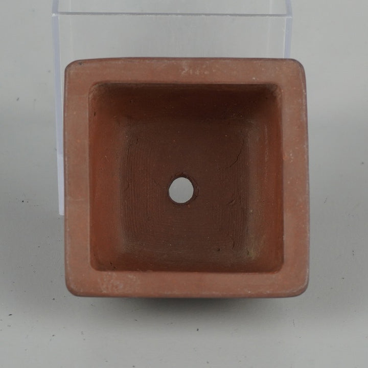 盆栽鉢 落款なし 小鉢 長辺 約 7.7cm 正方鉢 外縁 泥物 現品 中古鉢 品名落款なし...