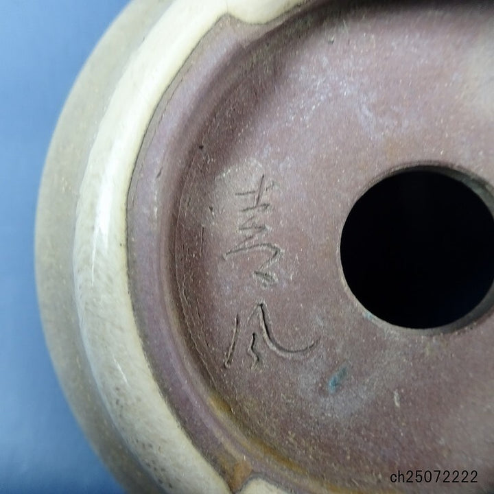 中古 盆栽鉢 青風 小鉢 長辺 約 8.8cm 丸鉢 釉薬 中古鉢 v1203485265