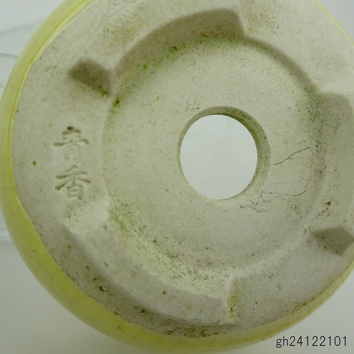 中古 盆栽鉢 青香 小鉢 長辺 約6.2cm 丸鉢 貫入 釉薬 中古鉢 q1200187306
