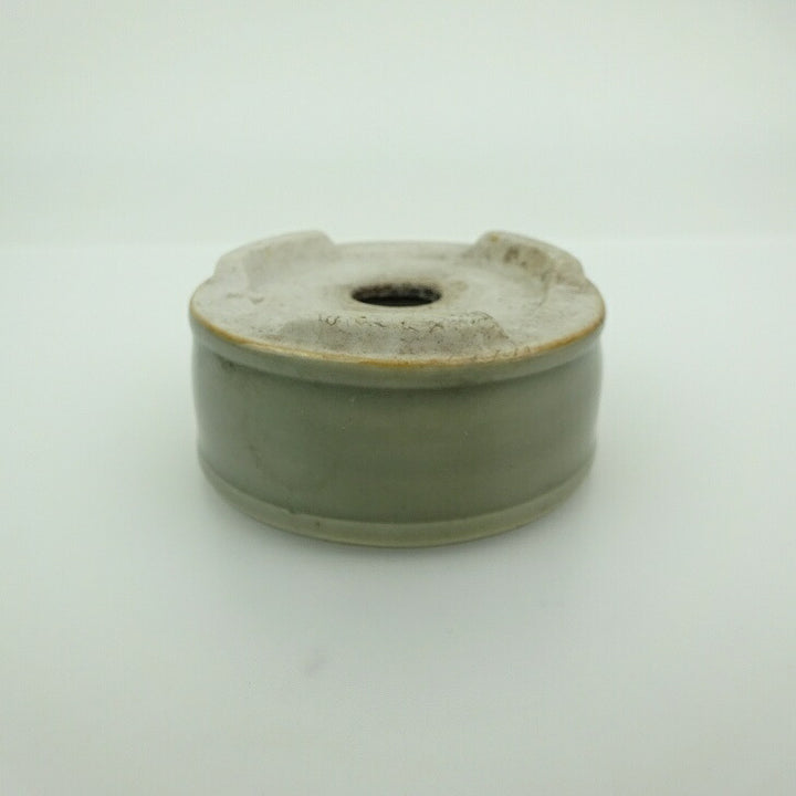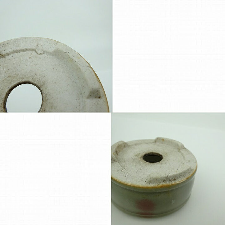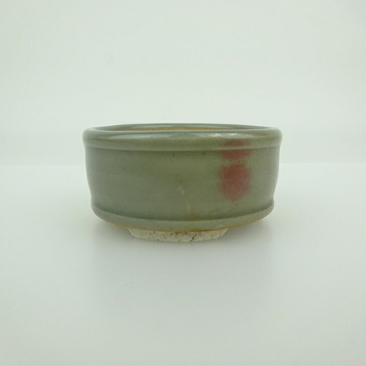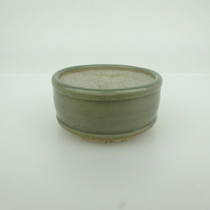 中古 盆栽鉢 青香 小鉢 長辺 約6cm 丸鉢 上下帯 釉薬 中古鉢 p1200272457