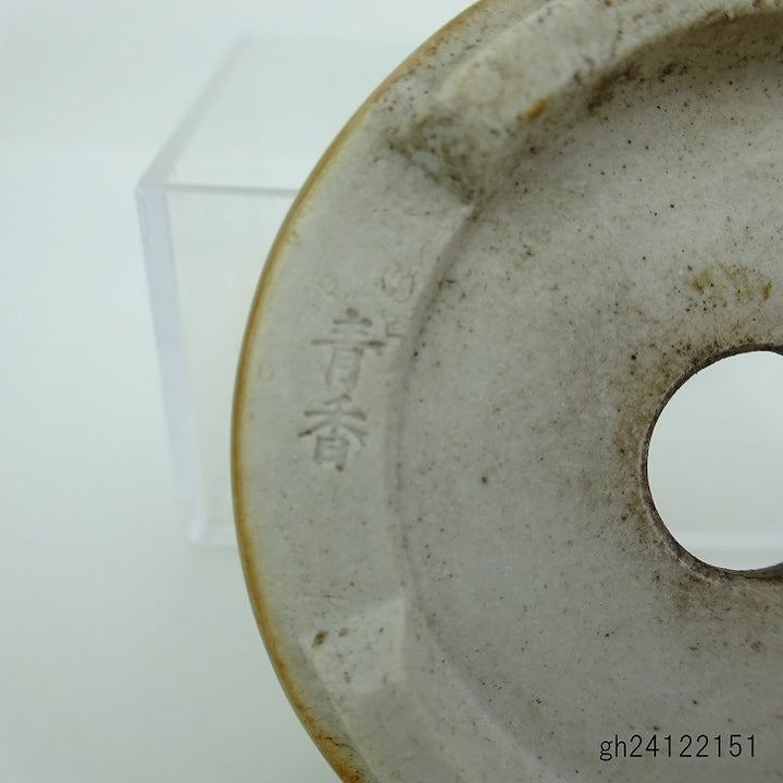 【中古】 盆栽鉢 青香 小鉢 長辺 約 6cm 丸 鉢 上下帯 釉薬 現品 中古鉢 品名青香...