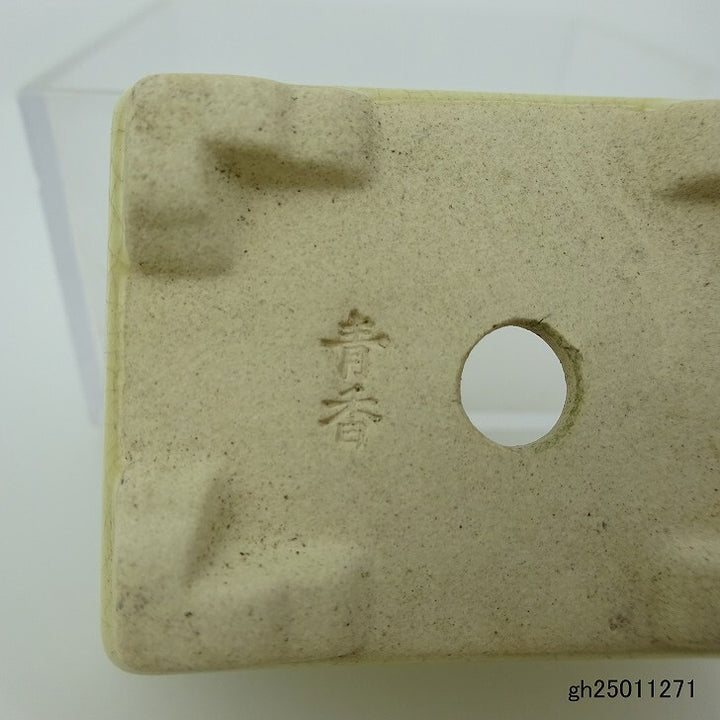 盆栽鉢 青香 小鉢 長辺 約 6cm 長方 鉢 縁付 貫入 釉薬 現品 中古鉢 品名青香...