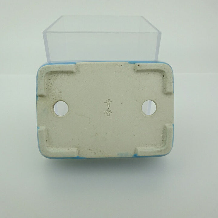 中古 盆栽鉢 青香 小鉢 長辺 約9.2cm 長方鉢 釉薬 中古鉢 f1201486976