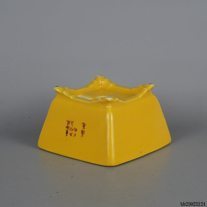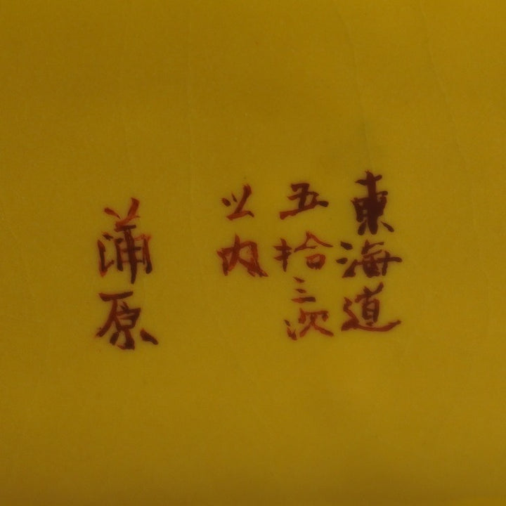盆栽鉢 駿河 政山 小型 長辺 約 11.4cm 正方鉢 窓入 赤絵 東海道 五拾三次 浦原 釉薬 観賞用 現品 中古鉢 品名駿河政山...