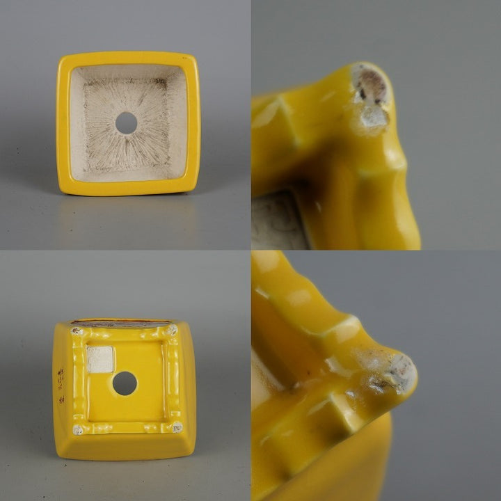 中古 盆栽鉢 駿河 政山 小型 長辺 約 11.4cm 正方鉢 窓入 赤絵 東海道 五拾三次 浦原 釉薬 観賞用 中古鉢 n1198405987