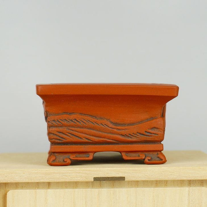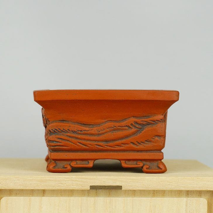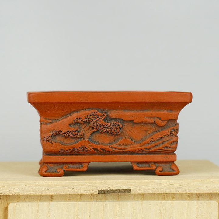 河田 共布 共箱 北斎 神奈川沖浪裏 浮彫 外縁 長方鉢 義辰窯 観賞用 盆栽鉢 新品 f1198414610