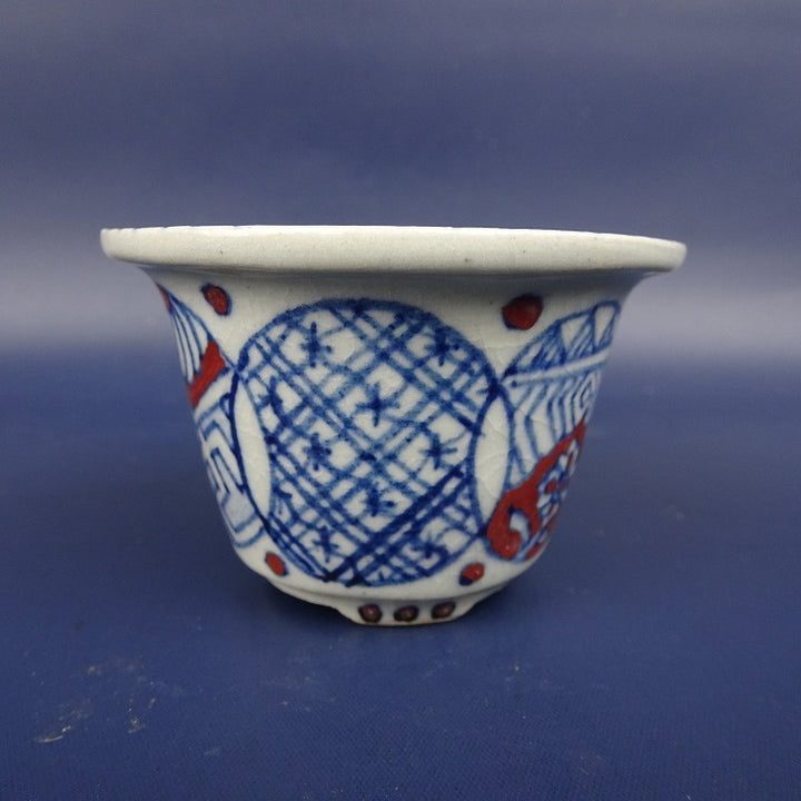 盆栽鉢 たかこ 小鉢 長辺 約7cm 丸鉢 外縁 色絵 箱付 新品 p1198411797