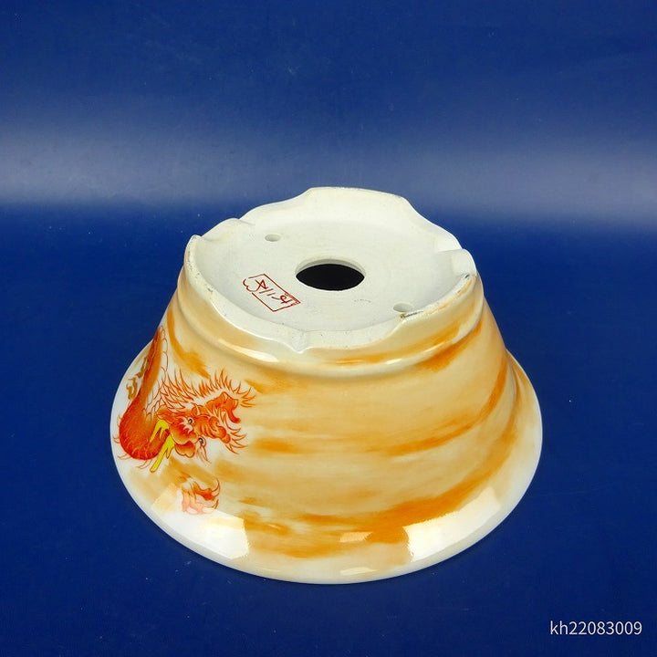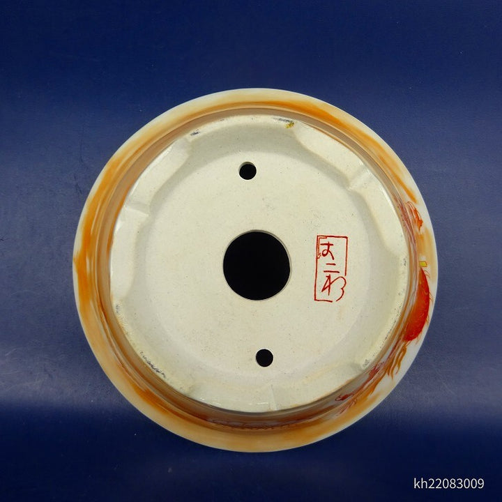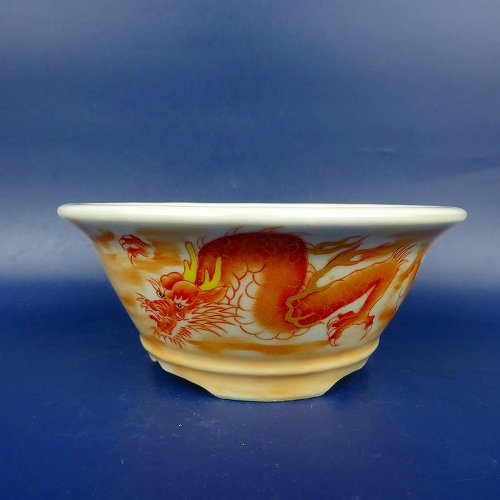 盆栽鉢 は二わ オリジナル鉢 小型 長辺 約12.6cm 丸鉢 赤絵 龍 ドラゴン 観賞用 新品 d1198426905