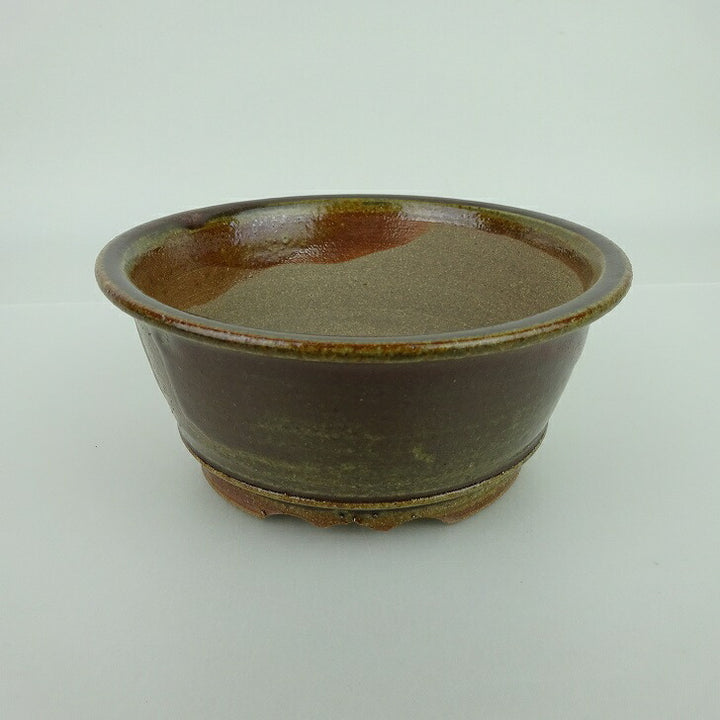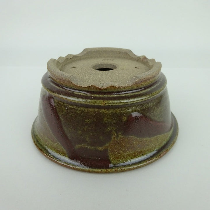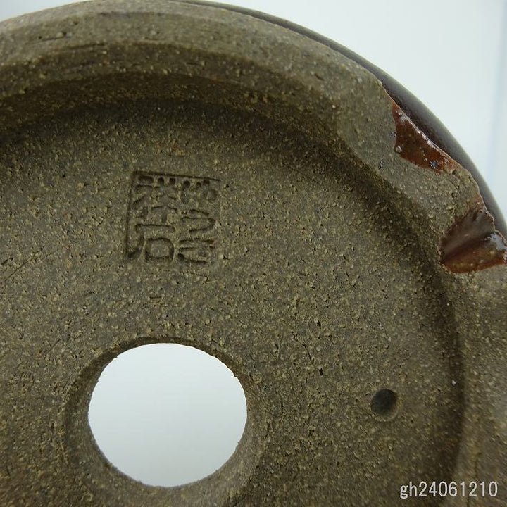 盆栽鉢 ゆうき祥石 小型 長辺 約 12.3cm 丸鉢 縁付 下帯 釉薬 新品 w1198406843