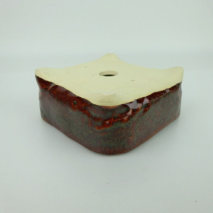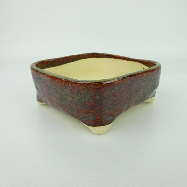 盆栽鉢 ゆうき祥石 小型 長辺 約 12cm 正方鉢 釉薬 観賞用 新品 r1198410308