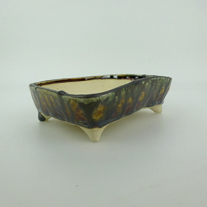 盆栽鉢 ゆうき祥石 小型 長辺 約 13.5cm 長方鉢 釉薬 新品 u1202105454