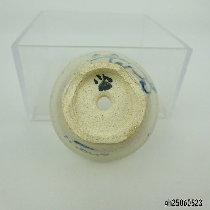 盆栽鉢 ゆうき祥石 小鉢 長辺 約 4.7cm 丸鉢 落款なし 絵鉢 猫 ネコ ねこ 肉球 足跡 釉薬 観賞用 新品 v1198433743