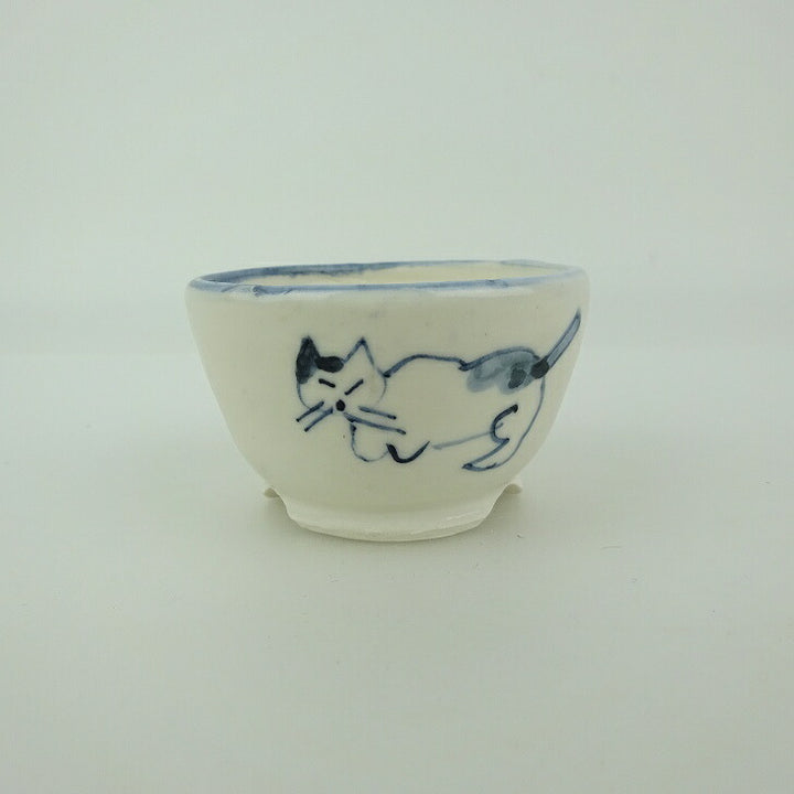 盆栽鉢 ゆうき祥石 小鉢 長辺 約 5.3cm 丸鉢 絵鉢 猫 ネコ ねこ 釉薬 観賞用 新品 r1198405736