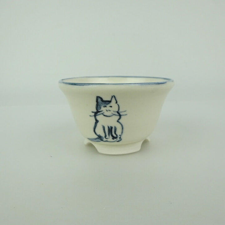 盆栽鉢 ゆうき祥石 小鉢 長辺 約 6.5cm 丸鉢 絵鉢 猫 ネコ ねこ 釉薬 観賞用 新品 u1198422738