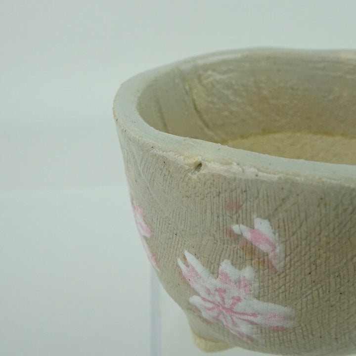 盆栽鉢 ゆうき祥石 小鉢 長辺 約 7.2cm 丸鉢 プリント 絵鉢 桜 サクラ さくら 釉薬 観賞用 新品 u1198424083