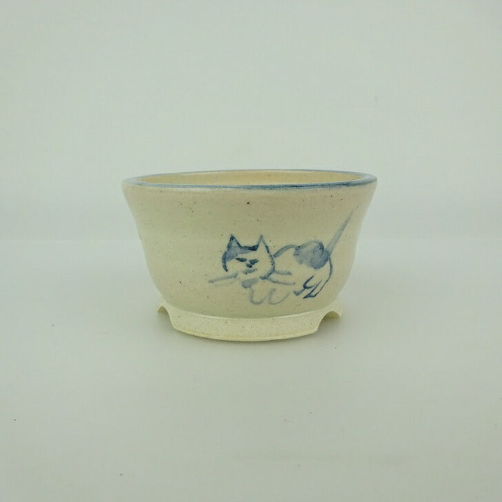 盆栽鉢 ゆうき祥石 小鉢 長辺 約 7.2cm 丸鉢 絵鉢 猫 ネコ ねこ 足跡 肉球 釉薬 観賞用 新品 q1198411492