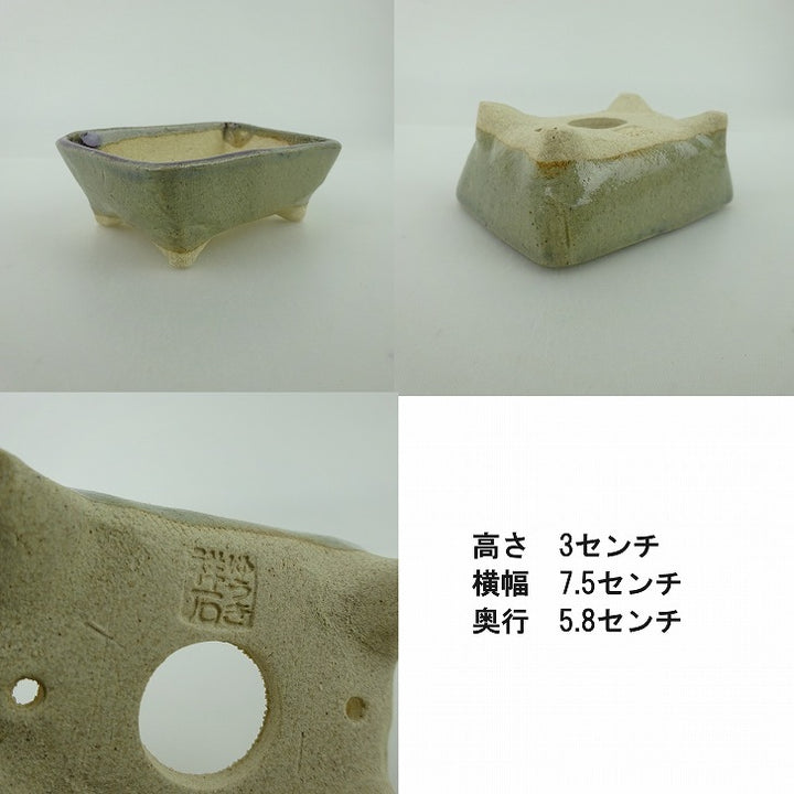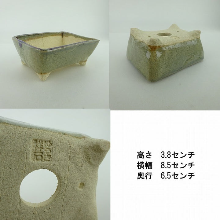 盆栽鉢 ゆうき祥石 2点セット 小鉢 長辺 約 8.5cm 長方鉢 グレー 釉薬 観賞用 現品 新品 品名ゆうき祥石 2点セット...