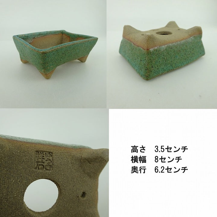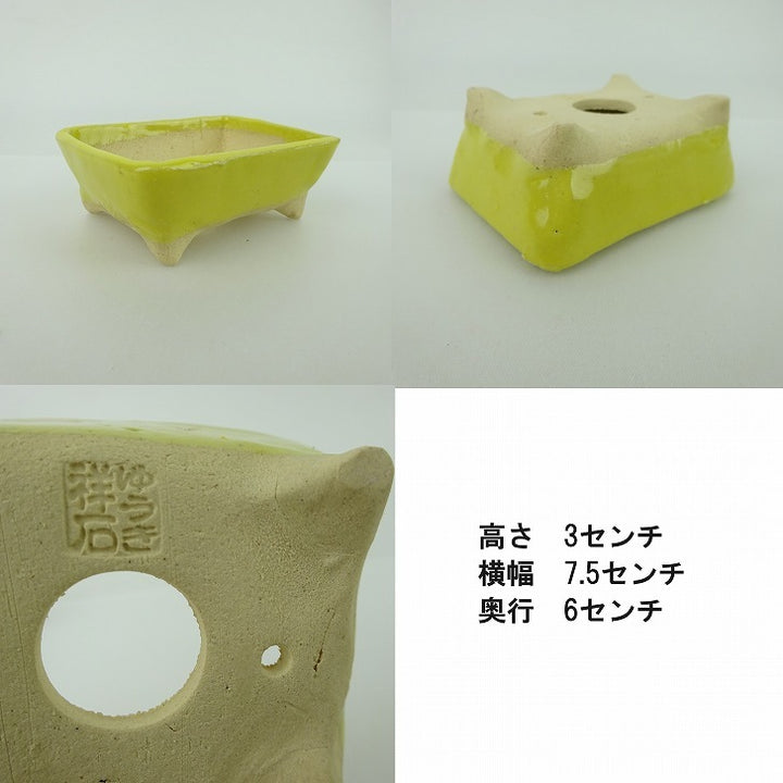 盆栽鉢 ゆうき祥石 2点セット 小鉢 長辺 約 8cm 長方鉢 黄 緑 釉薬 現品 新品 品名ゆうき祥石 2点セット...