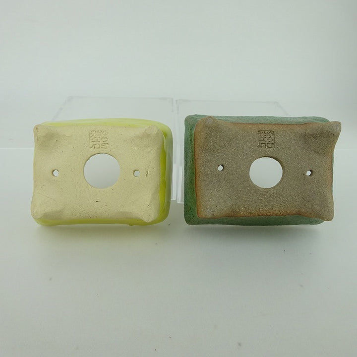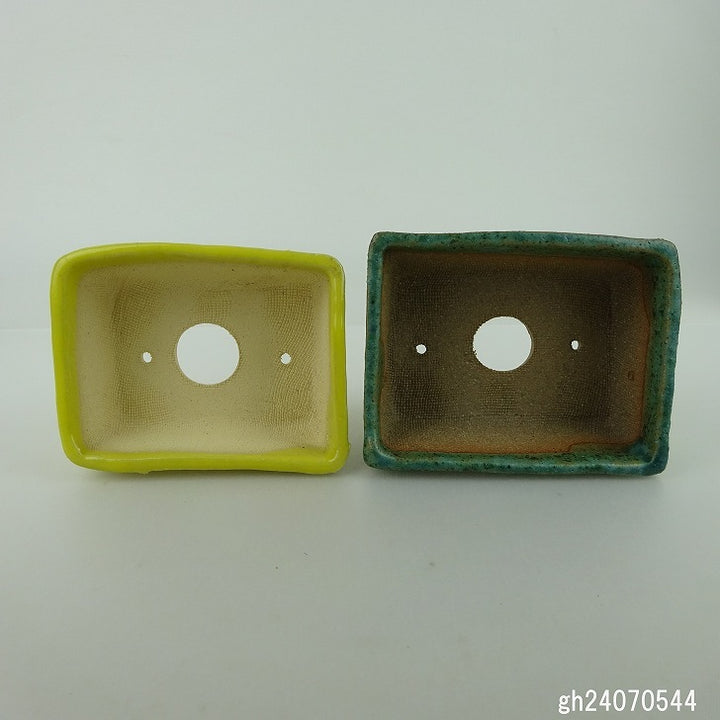 盆栽鉢 ゆうき祥石 2点セット 小鉢 長辺 約8cm 長方鉢 黄 緑 釉薬 新品 k1198412361