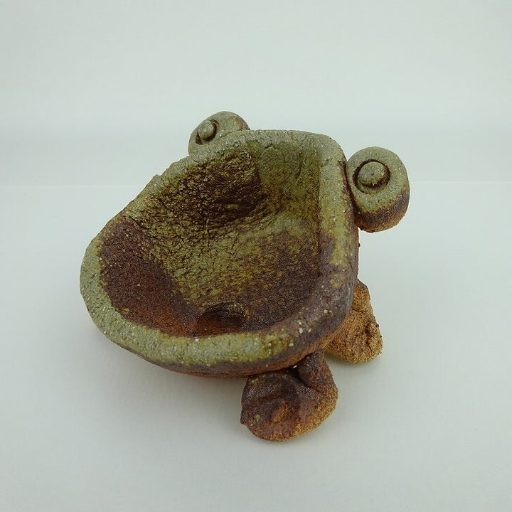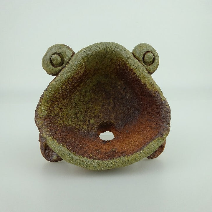 盆栽鉢 信楽焼 小型 長辺 約10.5cm かえる形 信楽 鉢 手作り 蛙 カエル 観賞用 現品 新品 品名信楽焼...