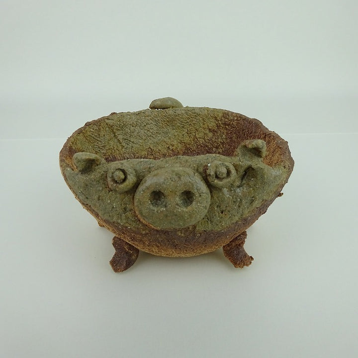 盆栽鉢 信楽焼 小型 長辺 約11.8cm ぶた形 信楽 鉢 手作り 豚 ブタ 観賞用 現品 新品 品名信楽焼...