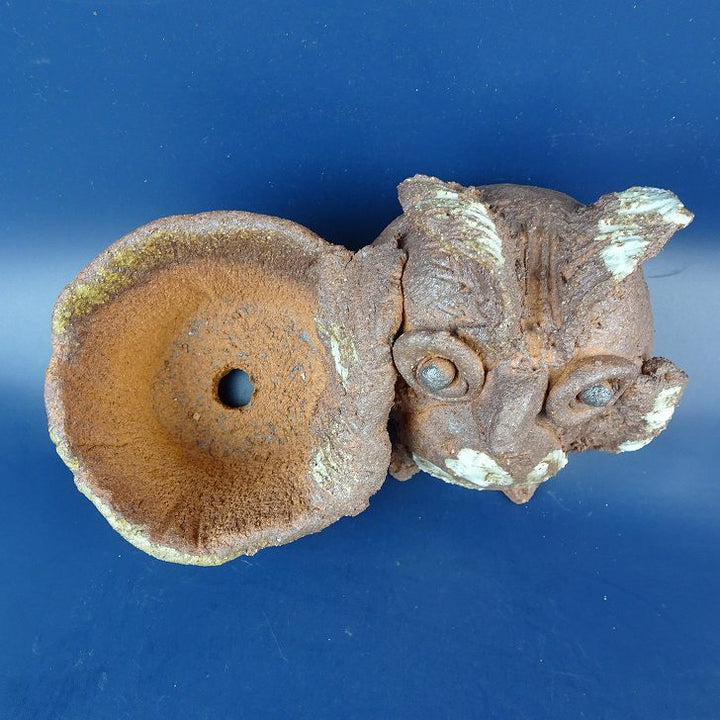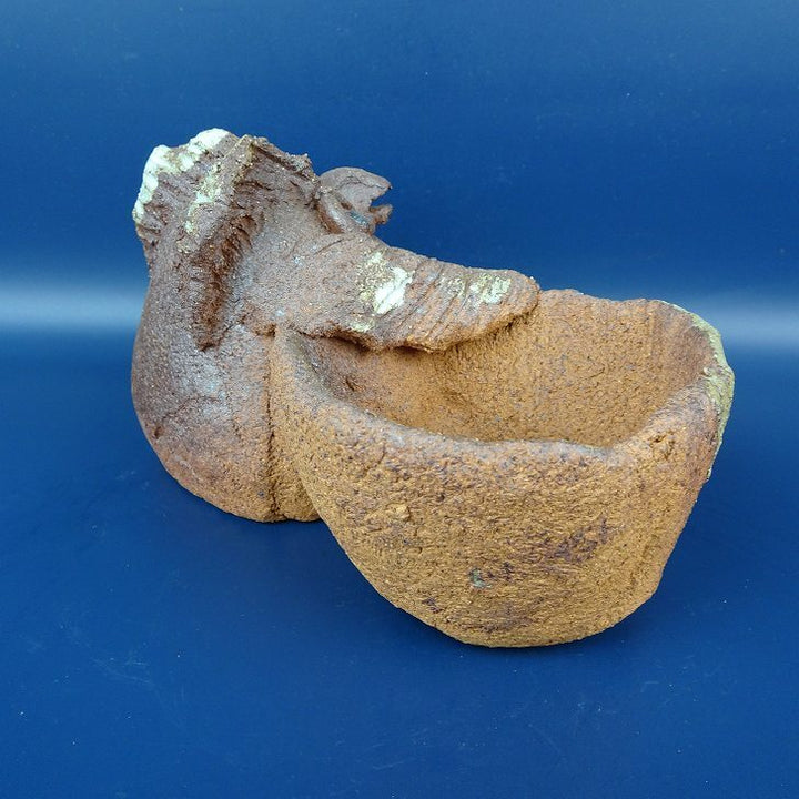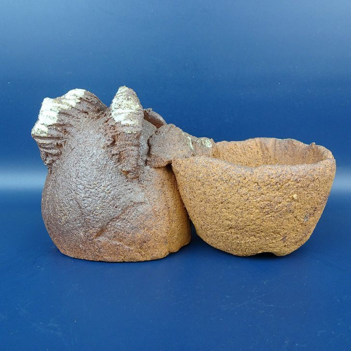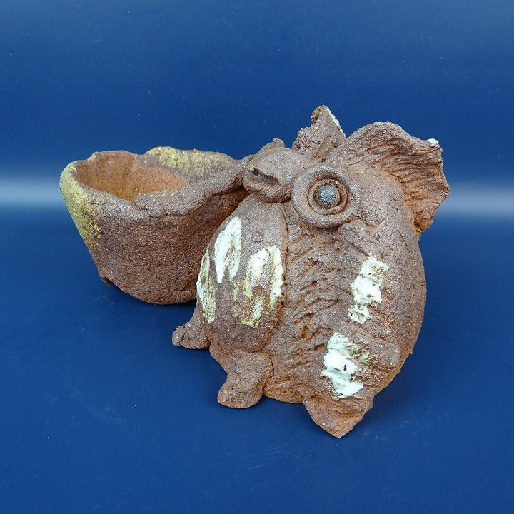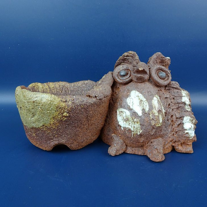 盆栽鉢 信楽 信楽焼 小型 長辺 約19cm ふくろう付 丸鉢 手作り 梟 フクロウ 観賞用 現品 新品 品名信楽焼...