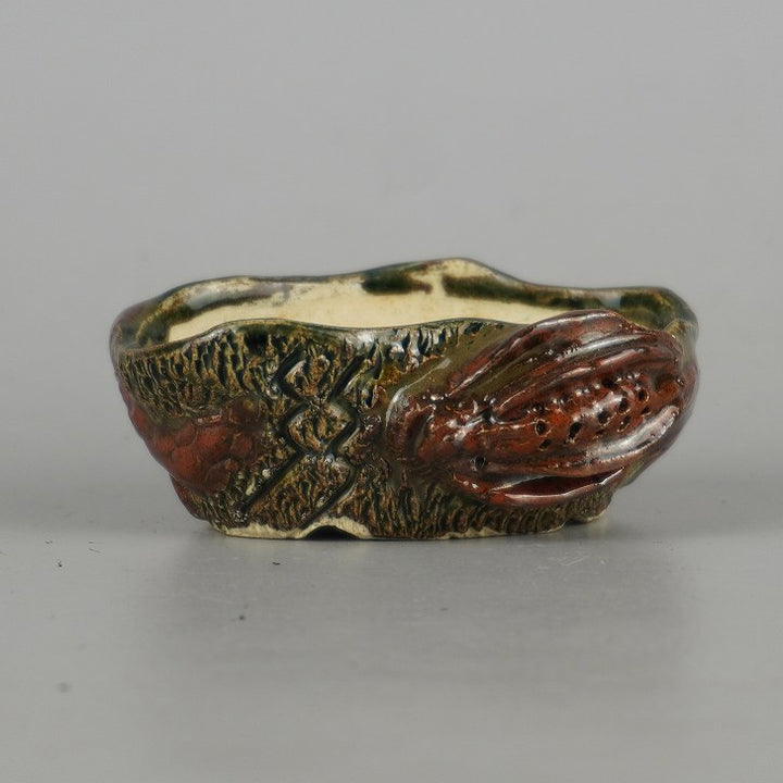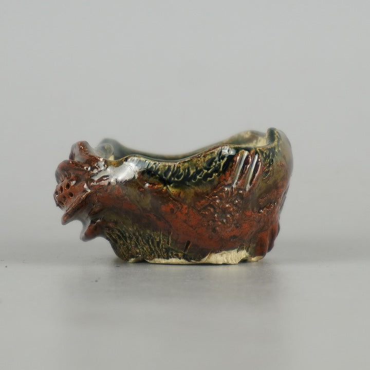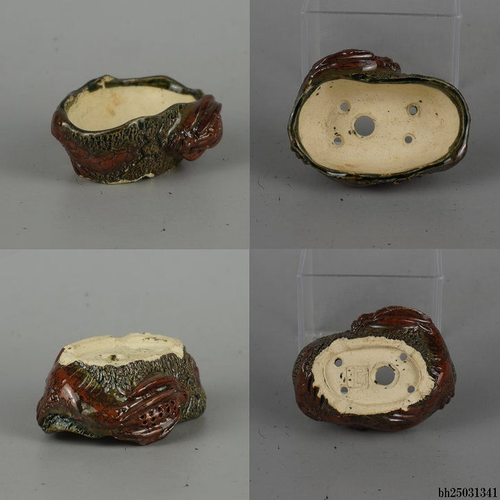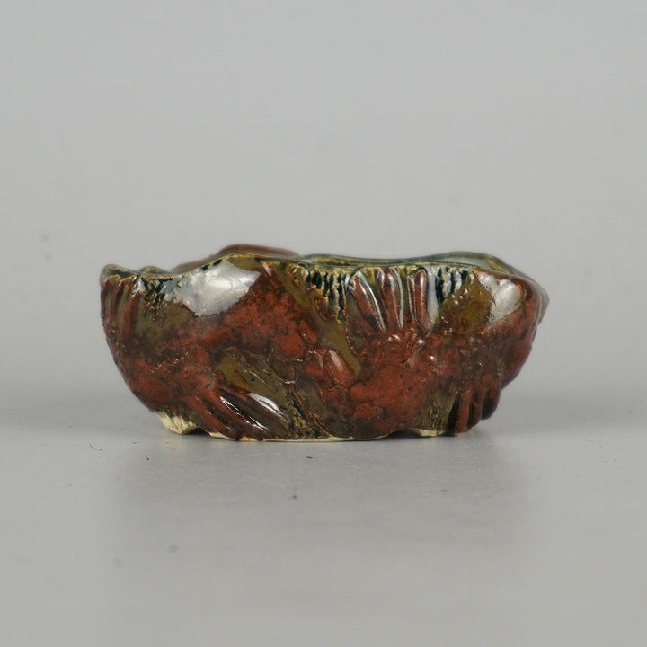 盆栽鉢 卓道 小鉢 長辺 約 7cm 変形 楕円鉢 龍 りゅう リュウ 竜 釉薬 観賞用 新品 m1198411459