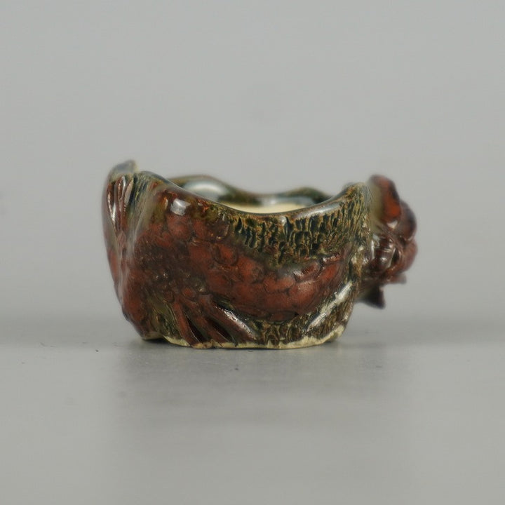 盆栽鉢 卓道 小鉢 長辺 約 7cm 変形 楕円鉢 龍 りゅう リュウ 竜 釉薬 観賞用 現品 新品 品名卓道...