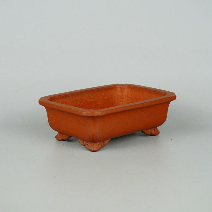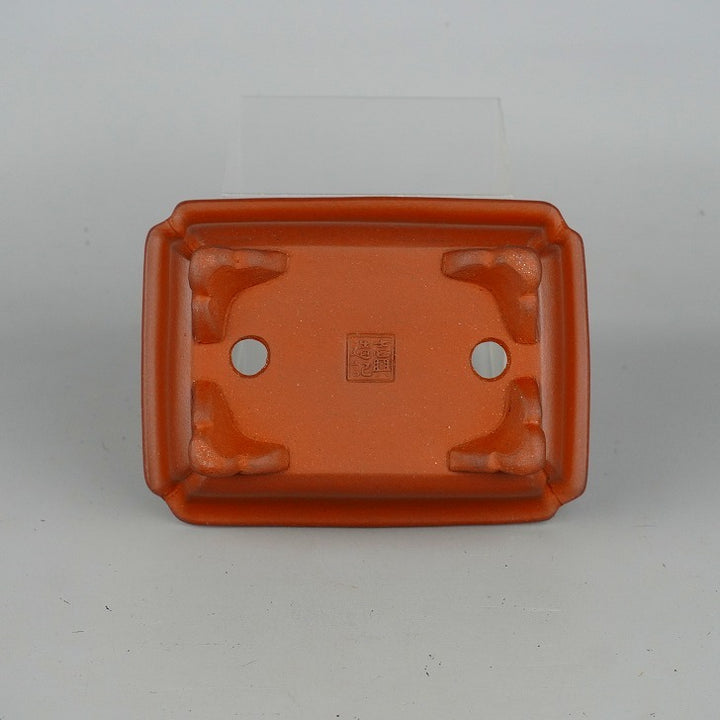 盆栽鉢 壱興造記 渡辺 一弘 小型 長辺 約13cm 長方鉢 隅入 雲足 長角 泥物 現品 新品 本名:渡辺一弘 父、渡辺正山のもとで修業しながら釉薬を研究し、昭和53年頃から小品樹鉢焼成をはじめる。 タタラづくり主体の釉色樹鉢や釉色水盤、釉色は、織部、均釉、白交趾、黄交趾、瑠璃釉などが主でその中間色もあり多彩である。泥色、小品、大物の盆器を鉢・水盤ともつくる常滑の盆器作家。 作家名は「かずひろ」と読みますが、一般的に「いっこう」と訓読みされてい...