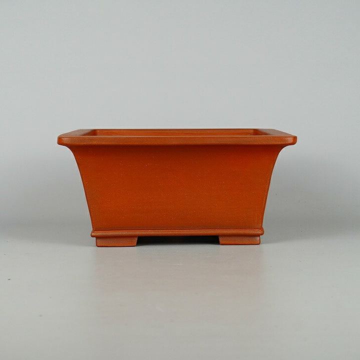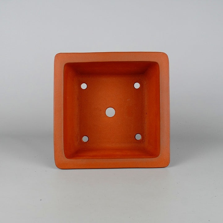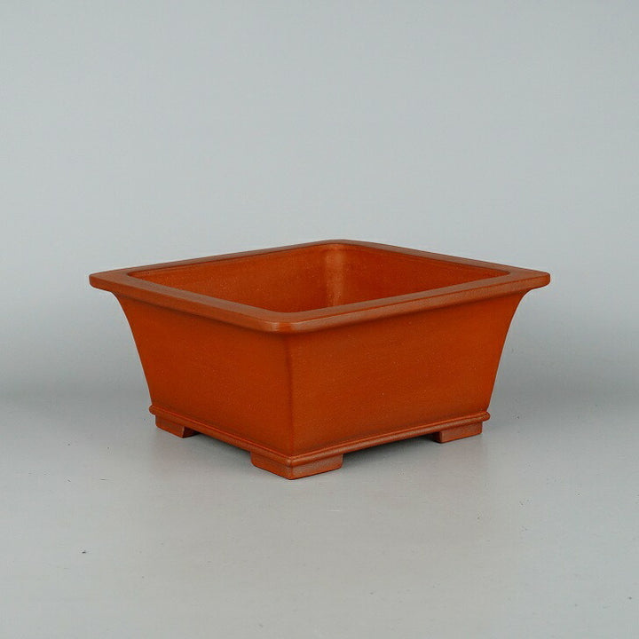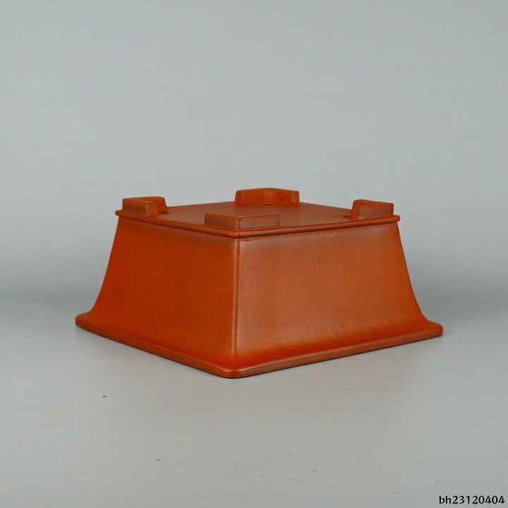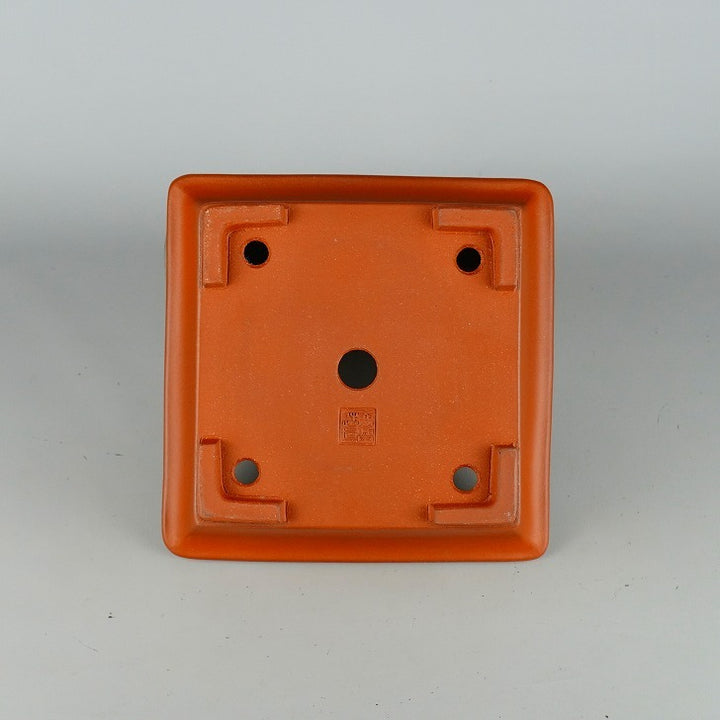 盆栽鉢 壹興造 渡辺 一弘 中型 長辺 約20.3cm 正方鉢 外縁 下帯 正角 朱泥 新品 g1198414543