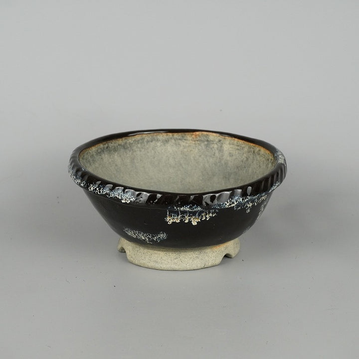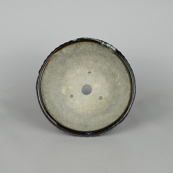 盆栽鉢 大山 大久保 欣三郎 小型 長辺 約15.5cm 丸鉢 釉薬 新品 l1198407432