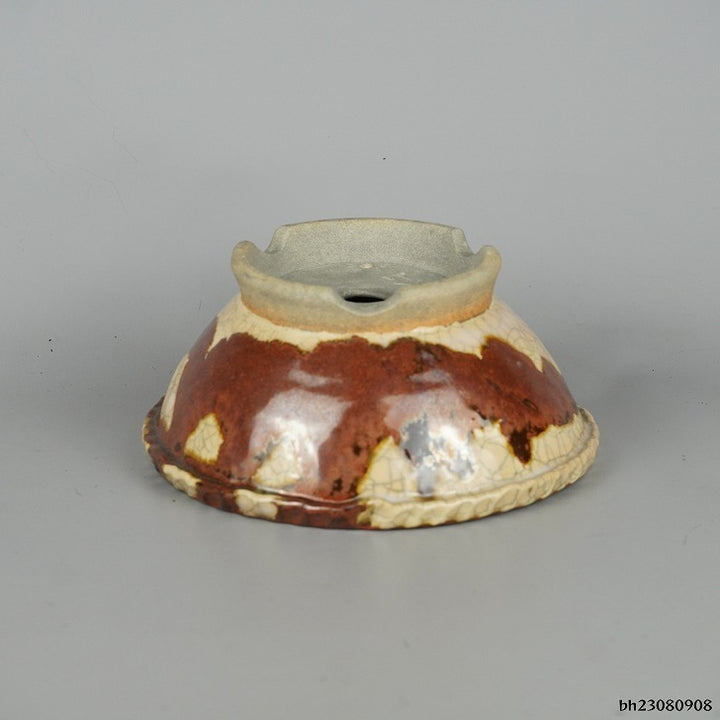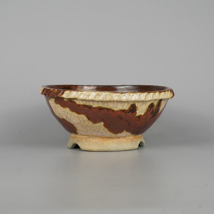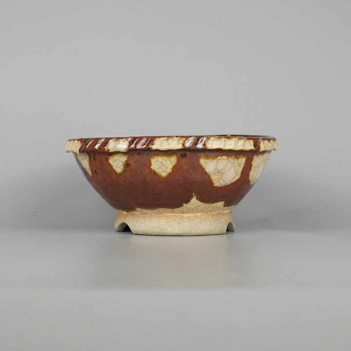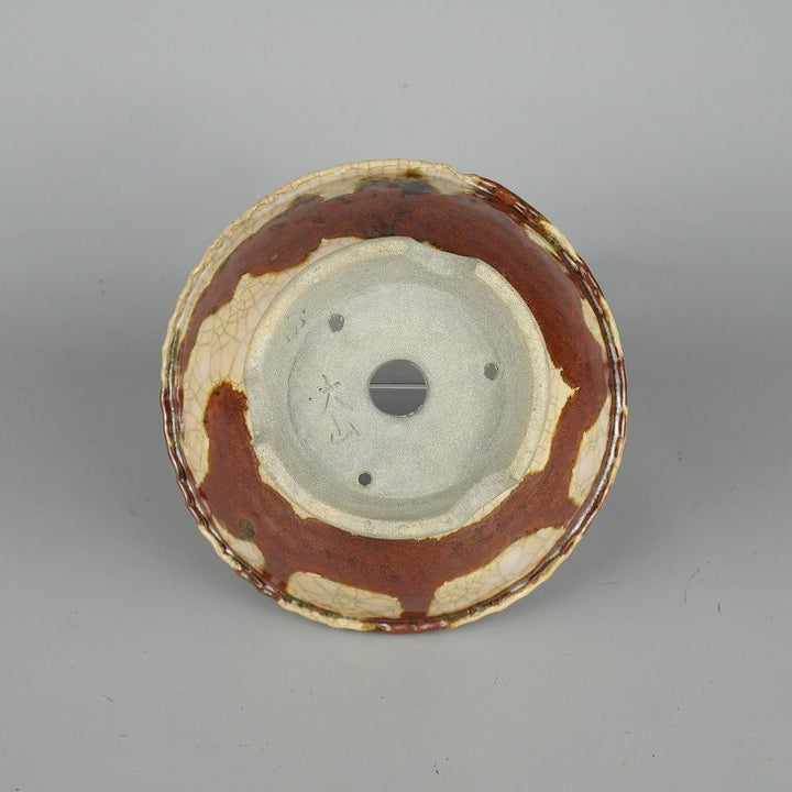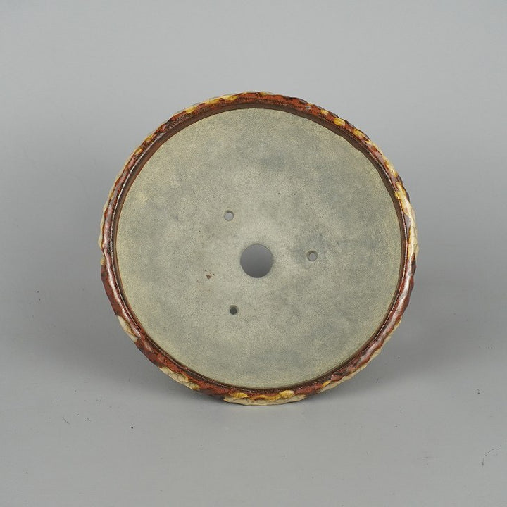 盆栽鉢 大山 大久保 欣三郎 小型 長辺 約16cm 丸鉢 釉薬 新品 j1198417864