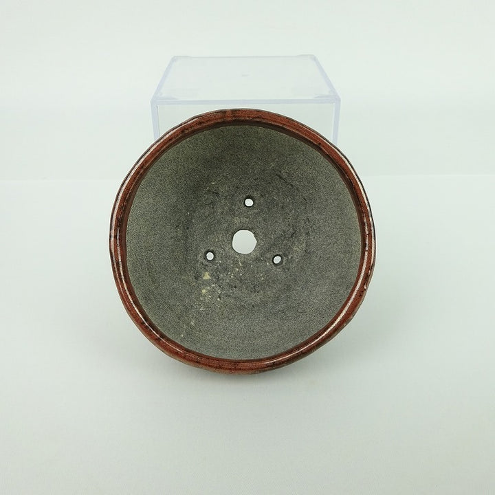 盆栽鉢 大山 大久保 欣三郎 小鉢 長辺 約9.5cm 丸鉢 釉薬 観賞用 新品 t1198410472