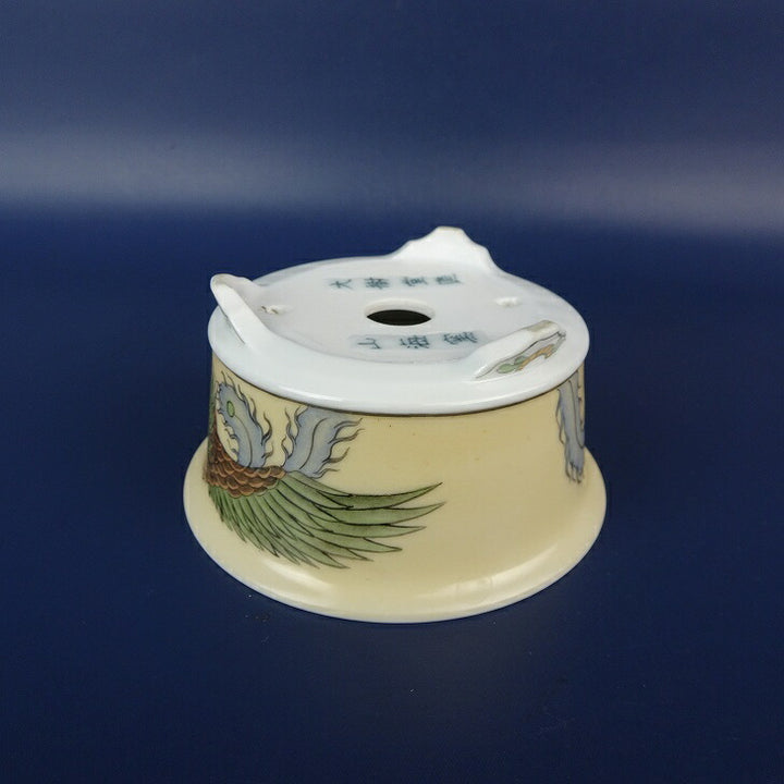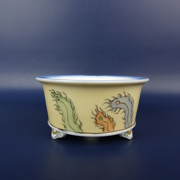 盆栽鉢 大樹堂造 山海窯 小鉢 長辺 約 9cm 丸鉢 外縁 色絵 鳳凰 絵鉢 鑑賞 観賞用 新品 w1203450730