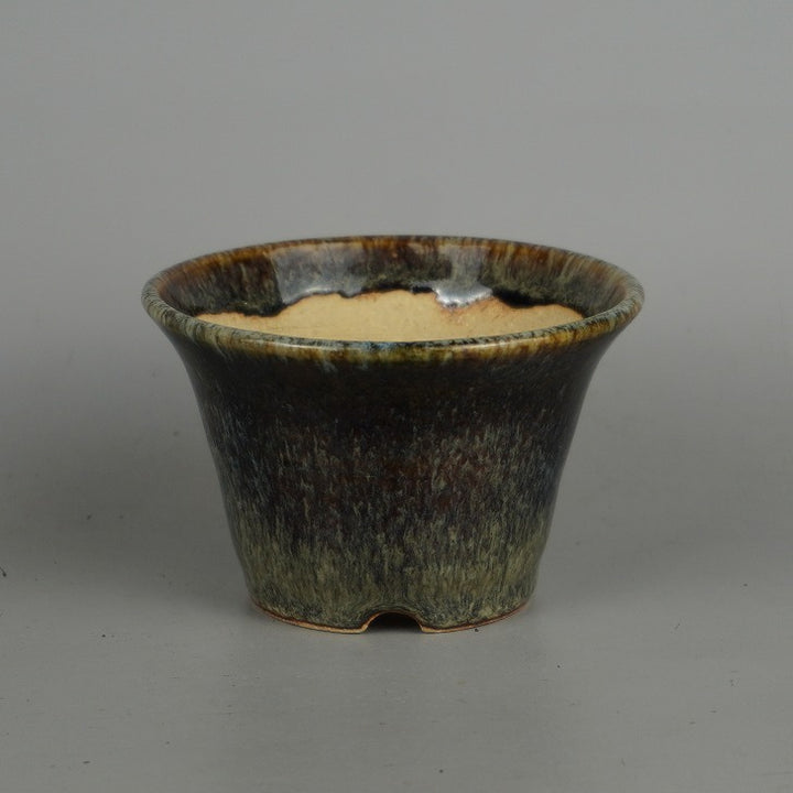 盆栽鉢 常滑 晃 樹晃 小鉢 長辺 約9.5cm 丸鉢 釉薬 新品 m1198410860