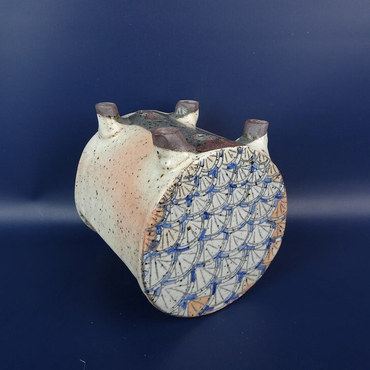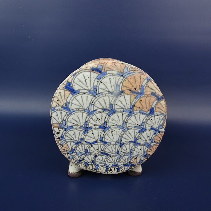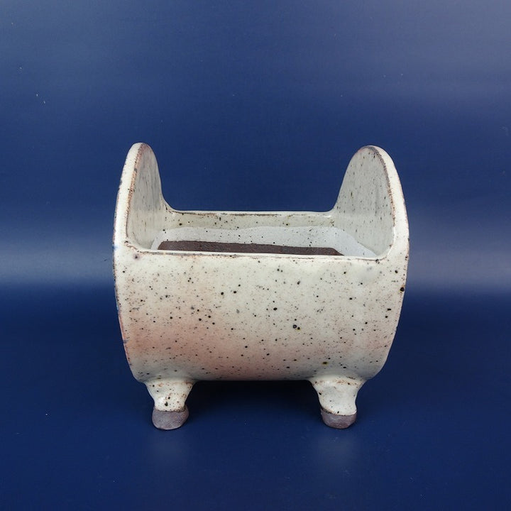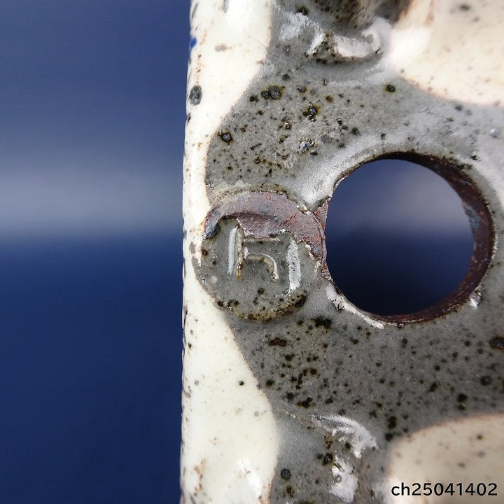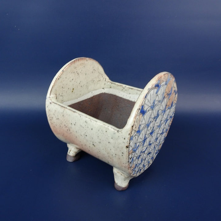 盆栽鉢 常滑 片 片岡 美津江 小型 高さ 約11.5cm 車紋 つづみ鉢 粉引 扇子柄 新品 数量物 g1198418729