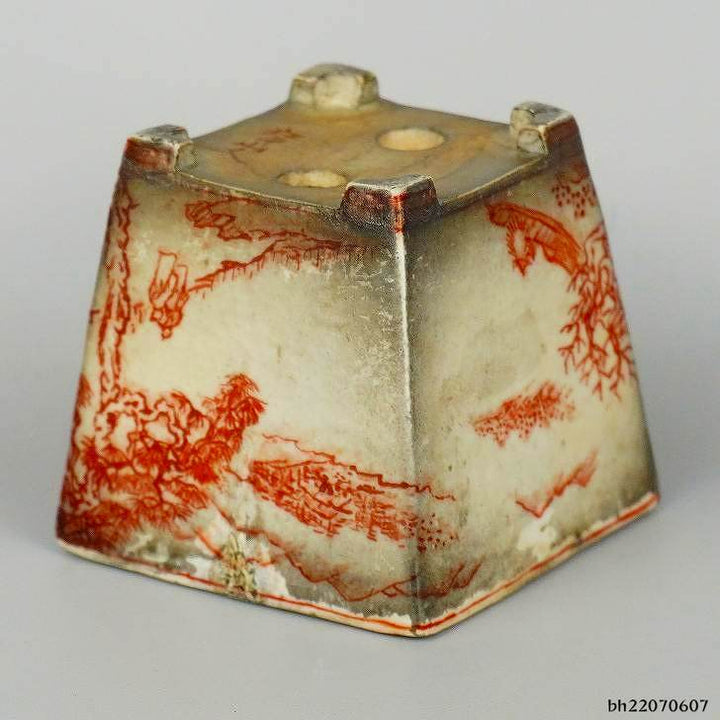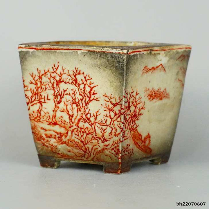 盆栽鉢 彦山人 小鉢 長辺 約5.8cm 正方鉢 赤絵 山水画 現品 中古鉢 商 品 名彦山人 サ イ ズ高さ 約5.5センチ...