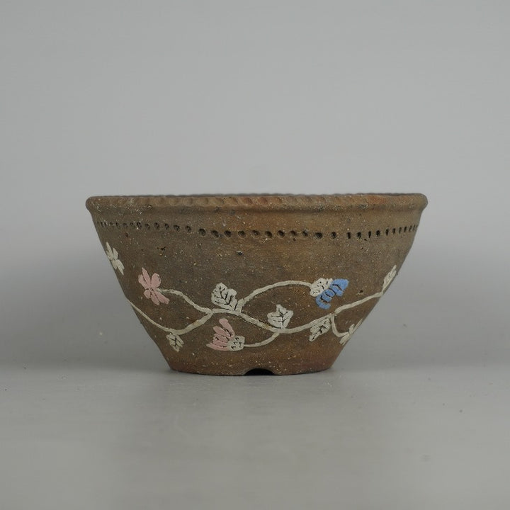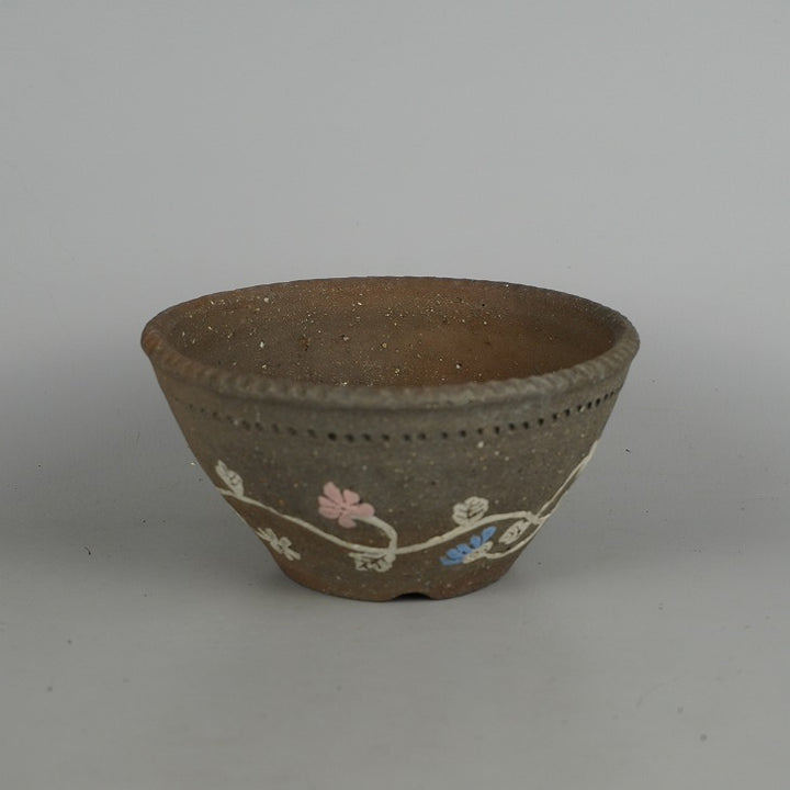 盆栽鉢 文山 越前文山 小型 長辺 約 15.5cm 鯖江園芸 丸鉢 色絵 花 はな ハナ 観賞用 現品 文山・越前文山 越前文山 1973年に鯖江園芸を開園する。 地元に伝わる越前焼に則って独自の作風を確立し、手びねりによる焼締の他、辰砂などの釉薬や象嵌を施したものがある。...