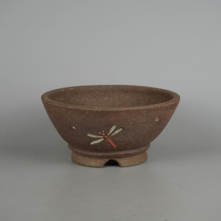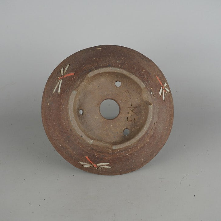 盆栽鉢 文山 越前文山 小型 長辺 約 18cm 鯖江園芸 丸鉢 下帯 色絵 蜻蛉 とんぼ トンボ 泥物 観賞用 1198409310