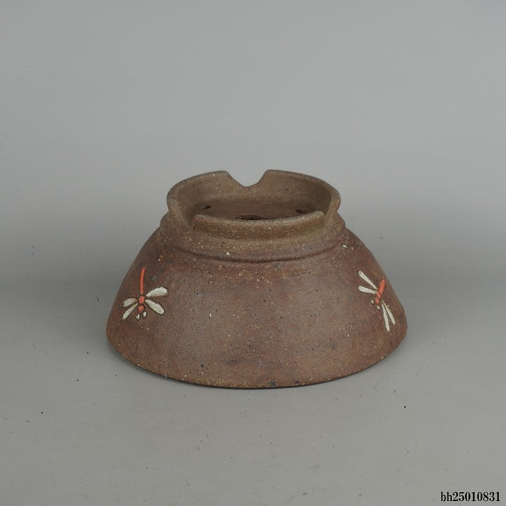 盆栽鉢 文山 越前文山 小型 長辺 約 18cm 鯖江園芸 丸鉢 下帯 色絵 蜻蛉 とんぼ トンボ 泥物 観賞用 現品 文山・越前文山 越前文山 1973年に鯖江園芸を開園する。 地元に伝わる越前焼に則って独自の作風を確立し、手びねりによる焼締の他、辰砂などの釉薬や象嵌を施したものがある。...