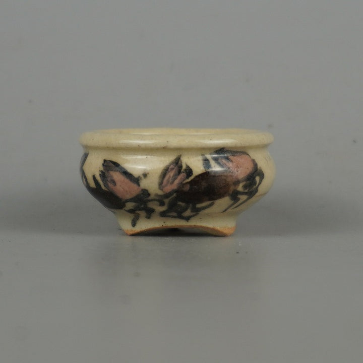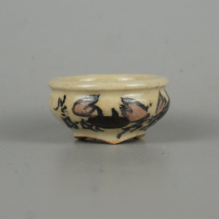 盆栽鉢 是好 矩 豆鉢 長辺 約4cm 丸鉢 色絵 蟹 かに カニ ミニ鉢 観賞用 新品 1198409755