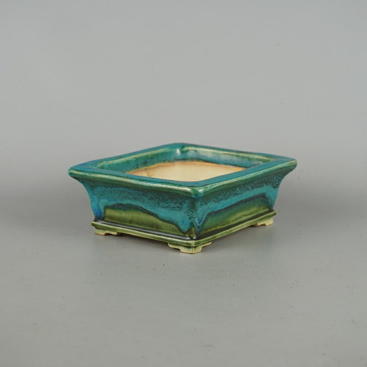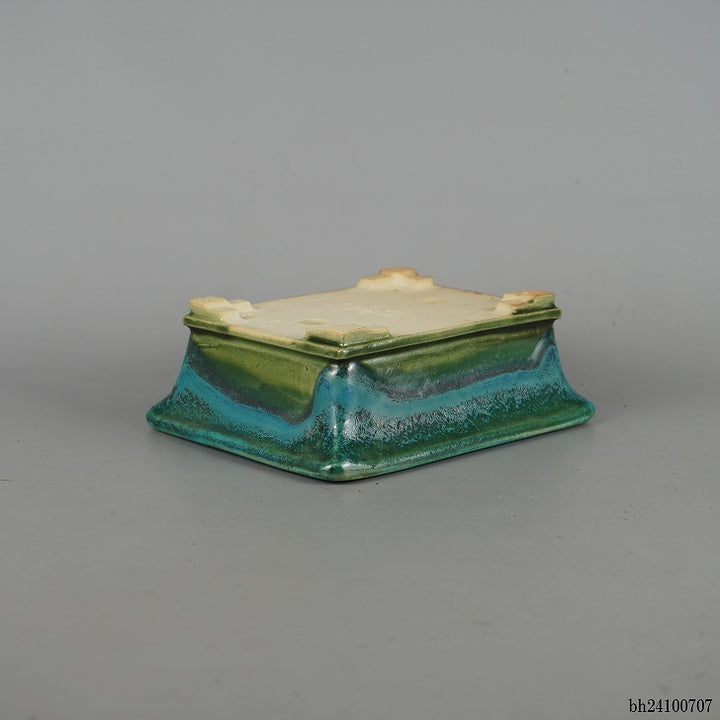 盆栽鉢 桂雲 福田桂雲 小型 長辺 約 15cm 長方鉢 外縁 下帯 釉薬 新品 j1198411344