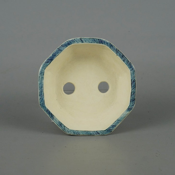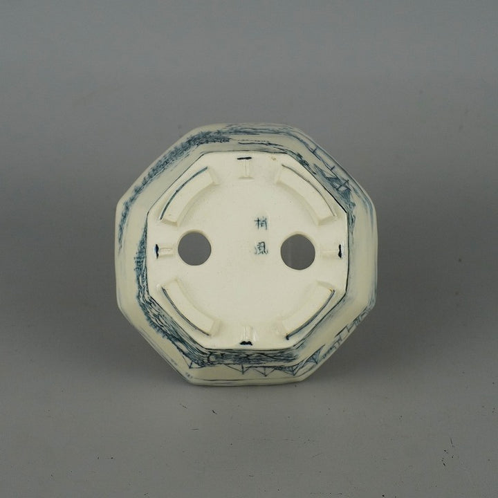 盆栽鉢 梢風 小型 長辺 約11cm 八角鉢 染付 山水図 舟 観賞用 現品 新品 品名梢風...