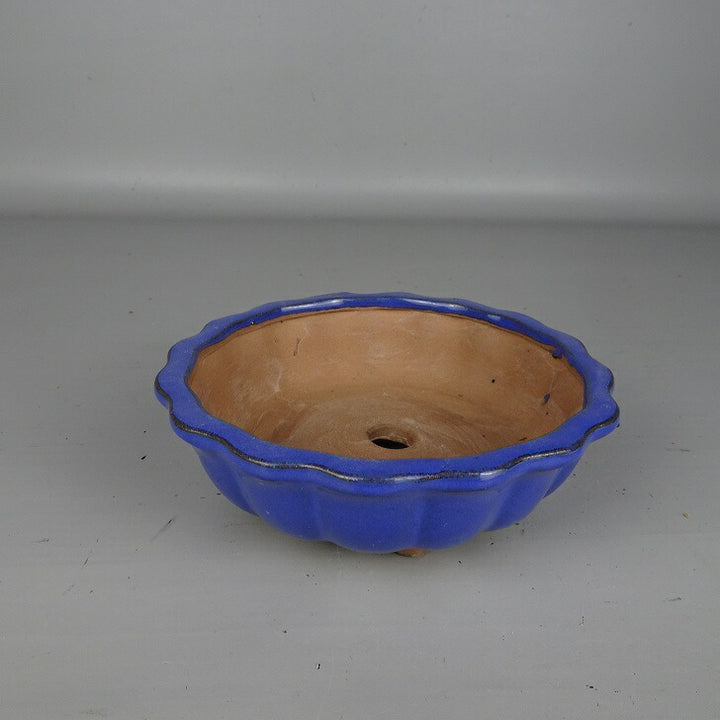 盆栽鉢 落款なし 小型 長辺 約 15cm 輪花鉢 外縁 釉薬 中国鉢 新品 数量物 q1201493708